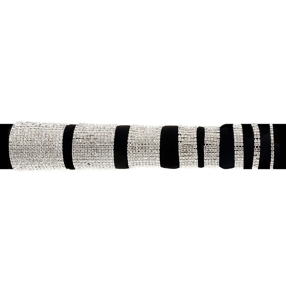 GLAMOR COLLECTION | This line shines by the quantity of rhinestones, preferably completely covered, plain or degraded. The shape remains sober and the connectors are simple or the straps are also covered by rhinestones.